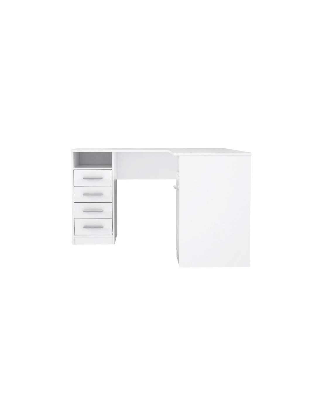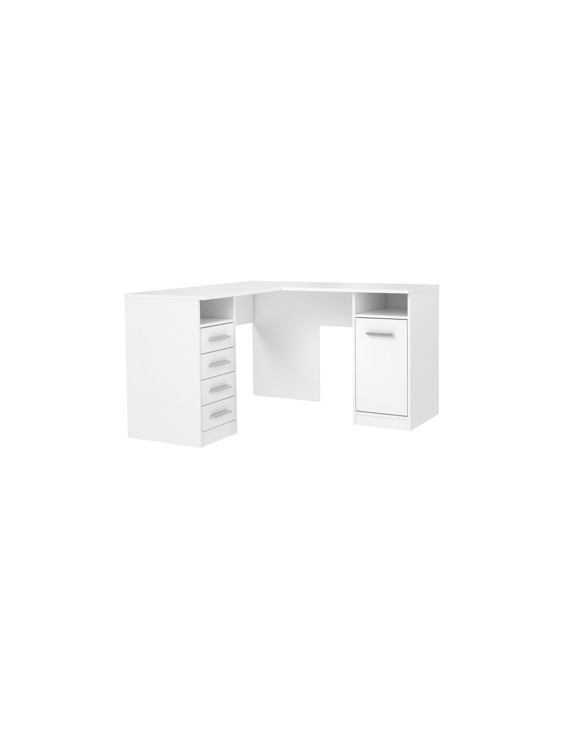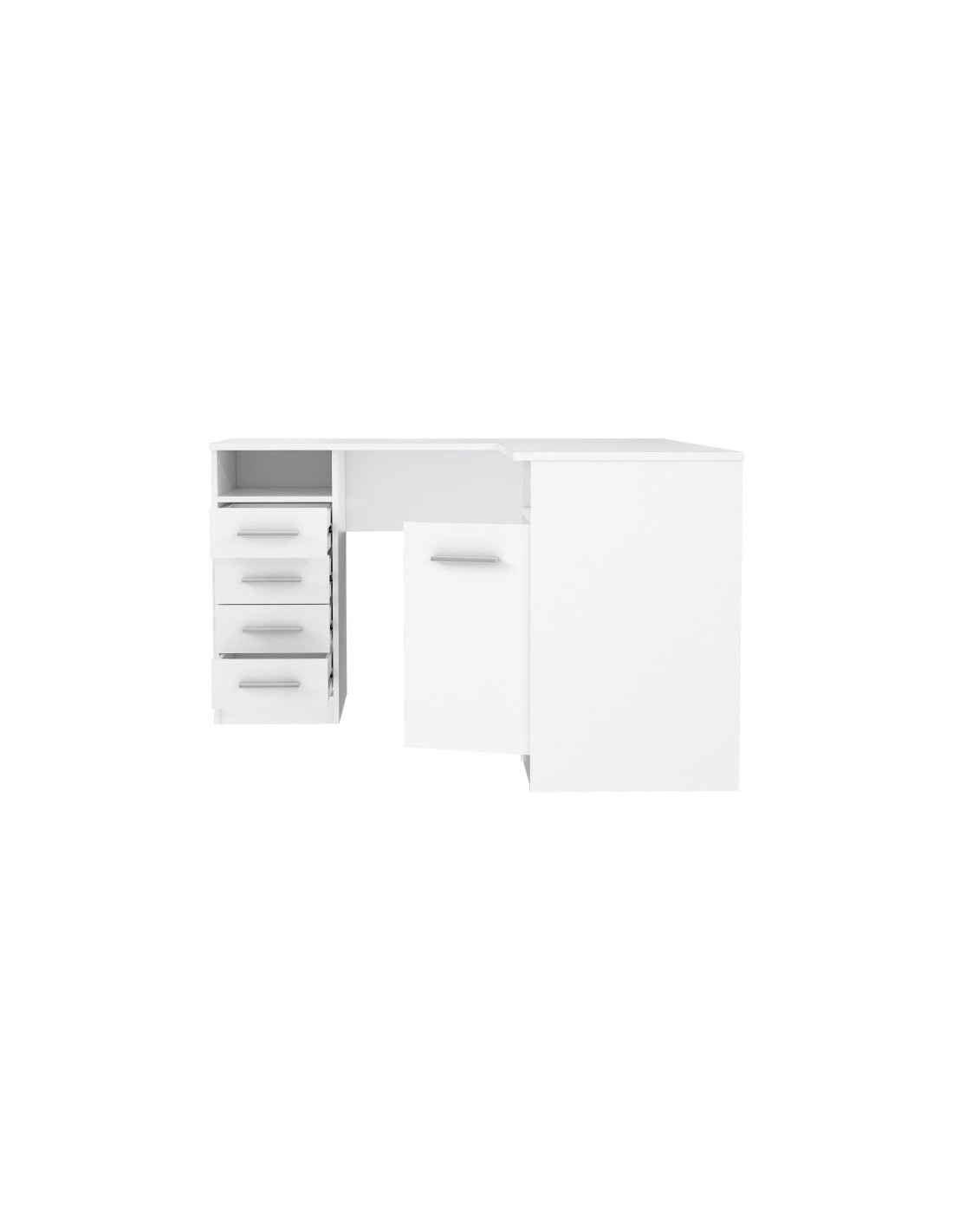 Eleganckie narożne biurko w nowoczesnym stylu doskonale sprawdzi się w domowym gabinecie oraz pokoju młodzieżowym, bez względu na to w jakiej aranżacji zostało urządzone. Subtelny Biały dekor odświeży wnętrze, nada mu lekkości i stylu.