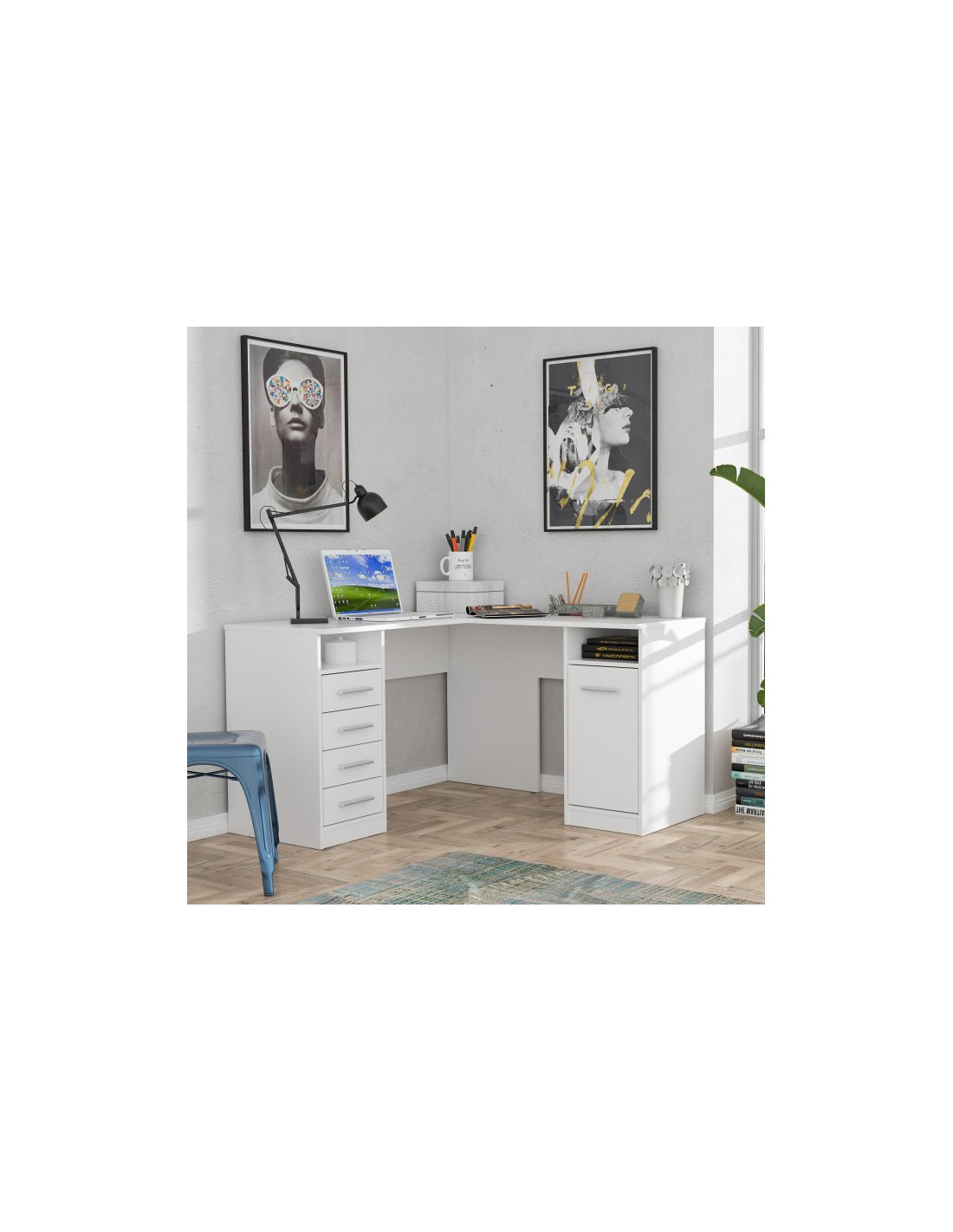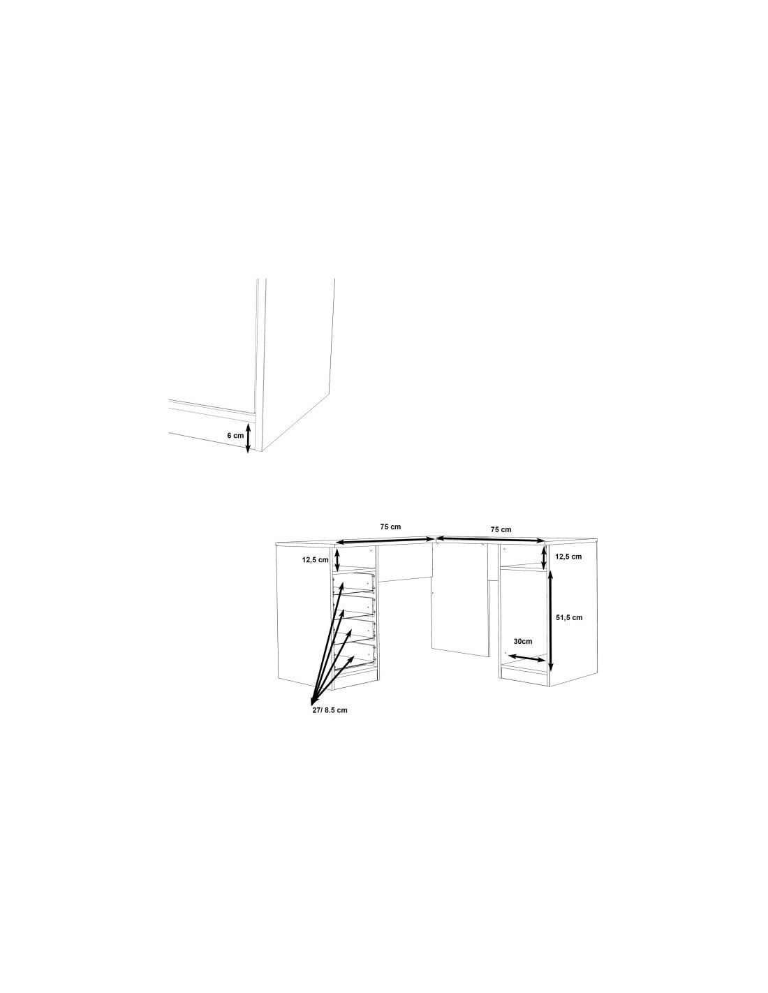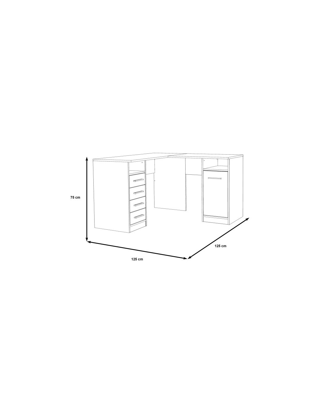 Eleganckie narożne biurko w nowoczesnym stylu doskonale sprawdzi się w domowym gabinecie oraz pokoju młodzieżowym, bez względu na to w jakiej aranżacji zostało urządzone. Subtelny Biały dekor odświeży wnętrze, nada mu lekkości i stylu.