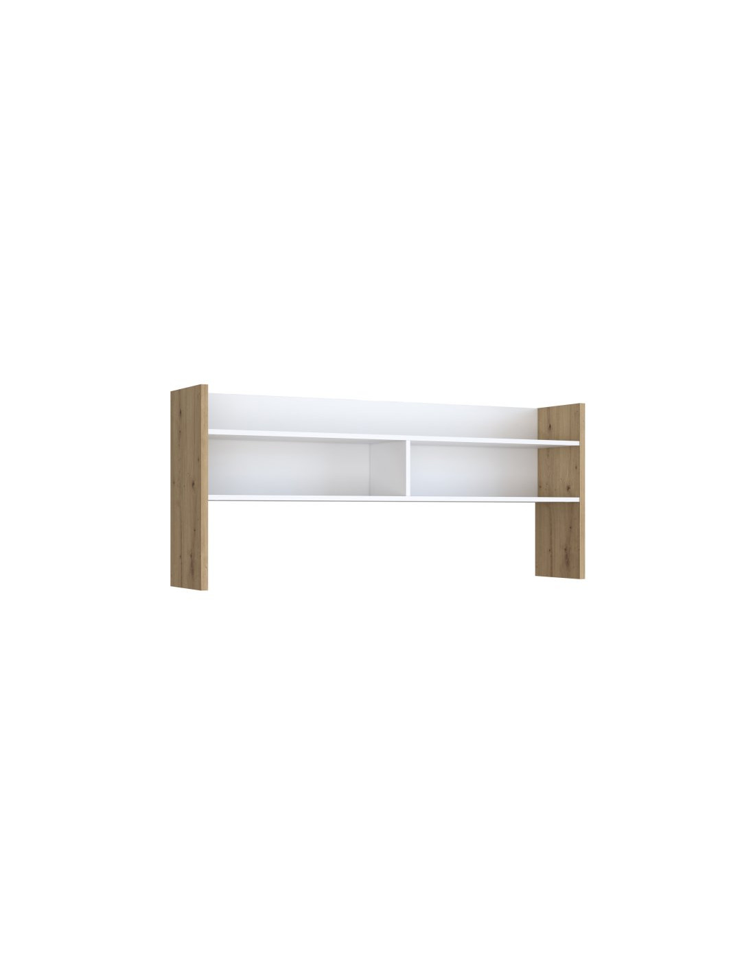 Nadstawka MODULTRICK zwiększy możliwości bazowego biurka. Podzielona na kilka sekcji umożliwi ustawienie na półkach nie tylko akcesoriów biurowych, ale też dekoracji, takich jak rośliny, zegarek czy figurkę ceramiczną. Jasna kolorystyka nadstawki dopełni białe biurko. Nadstawka dedykowana do dużego modelu biurka o szerokości 140 cm.