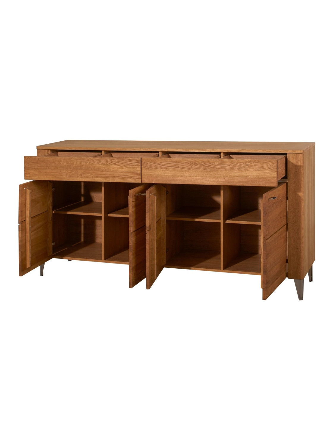 - Wykonanie korpus: zew.: płyta meblowa w naturalnej okleinie dębowej, wew .: płyta meblowa foliowana w dekorze drewnopodobnym