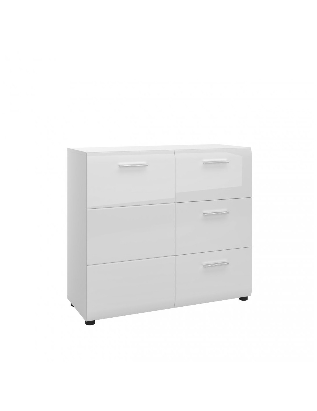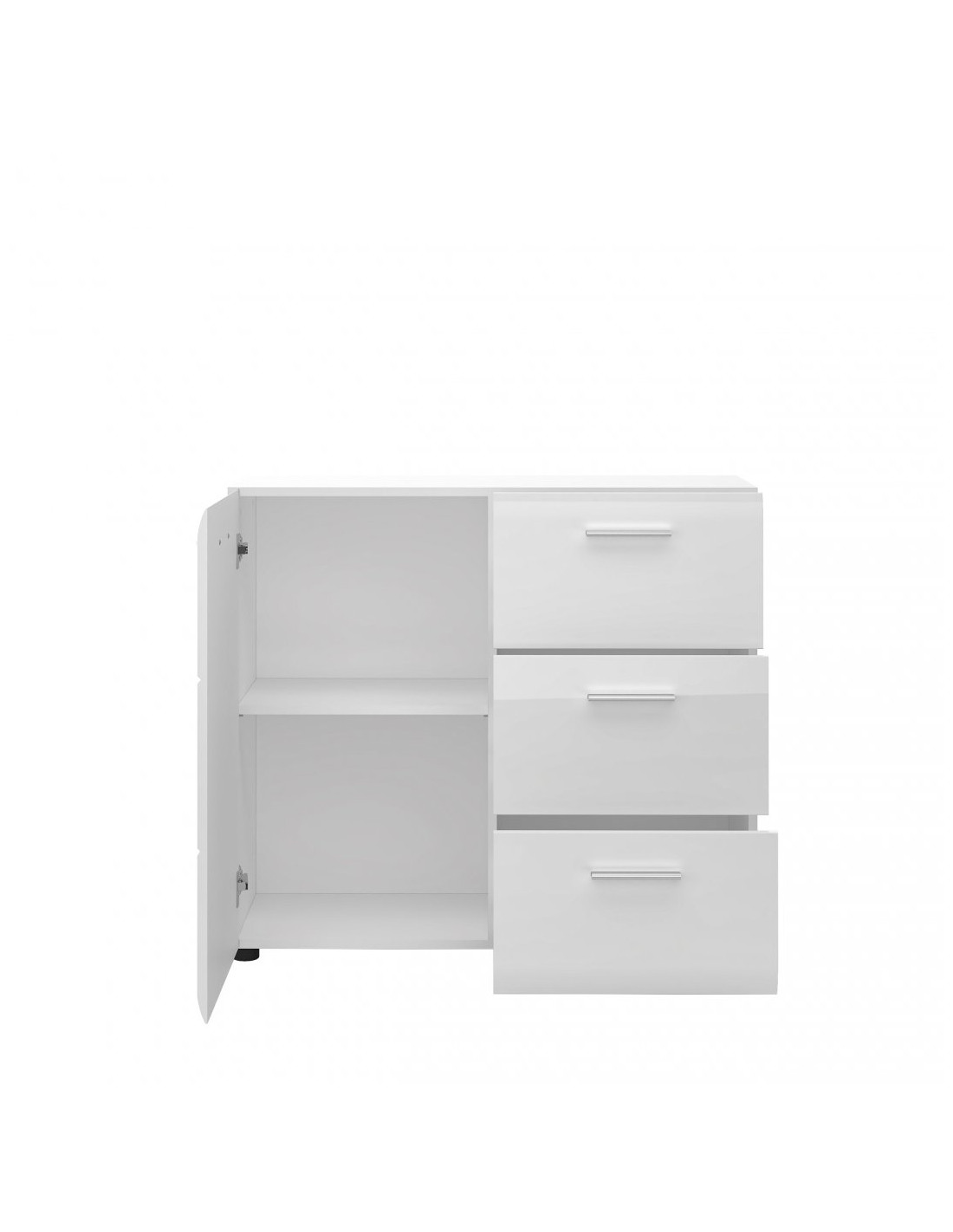 - Komoda trzyszufladowa Merano z frontem drzwiowym pełnym cechuje się ogromną funkcjonalnością i perfekcją wykonania. Nowoczesny mebel prezentuje się elegancko dzięki frontom, wykonanym z płyty MDF, wykończonym na wysoki połysk. Całość dopełniają minimalistyczne uchwyty, doskonale wtapiające się w stylistykę mebla. Efektowna komoda, zawierająca trzy pojemne szuflady wyposażona została w prowadnice kulkowe. Wysoka jakość elementów oraz biała kolorystyka sprawiają, że mebel odpowiedni będzie do wyjątkowo przemyślanej aranżacji niewielkiego przedpokoju. Prostota i biel wpłyną na optyczne powiększenie przestrzeni.