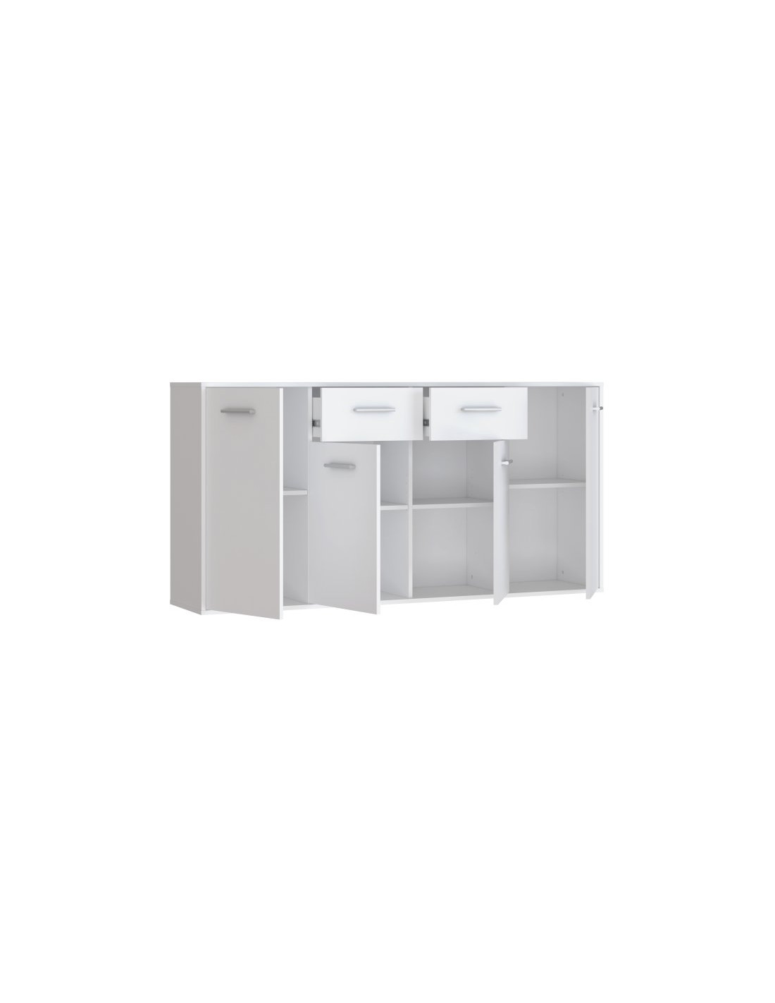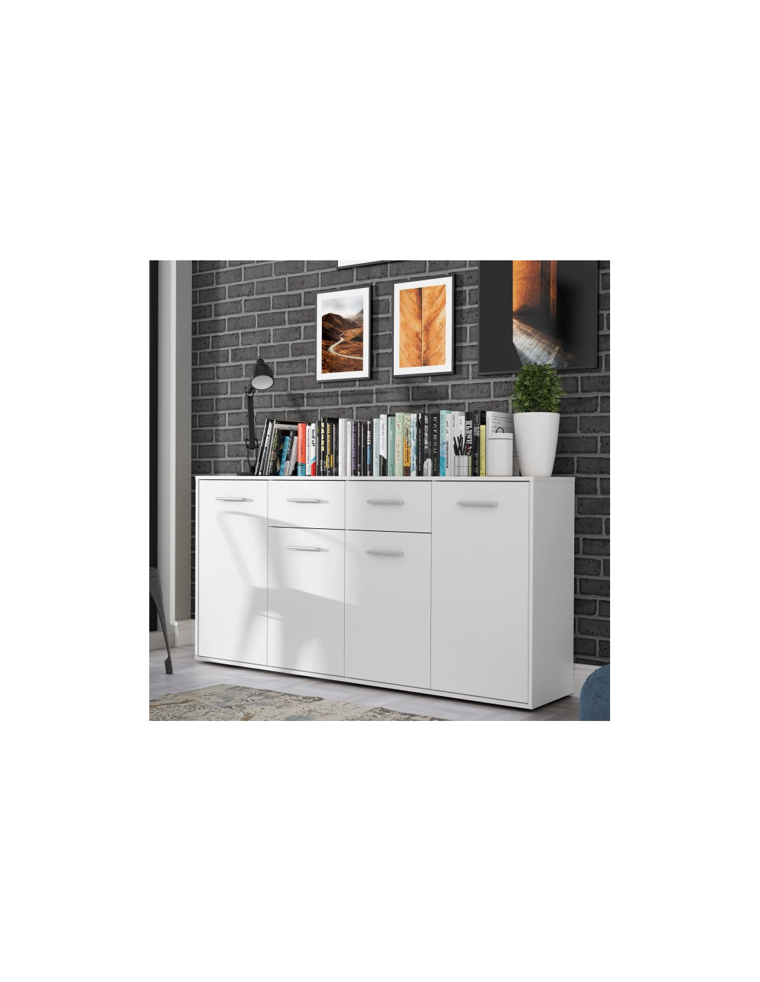 Nowoczesna komoda doskonale sprawdzi się w salonie i jadalni. Posiada 2 szuflady oraz 4 zamykane szafki. Posiada odpowiednio dużo miejsca do przechowywania różnych rzeczy.