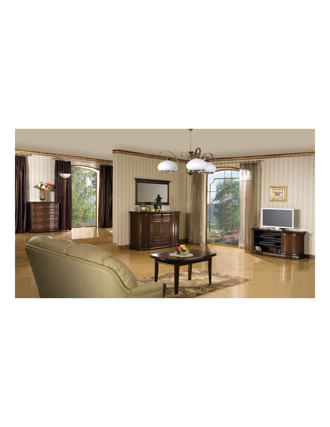 - Fornir + elementy z litego drewna.