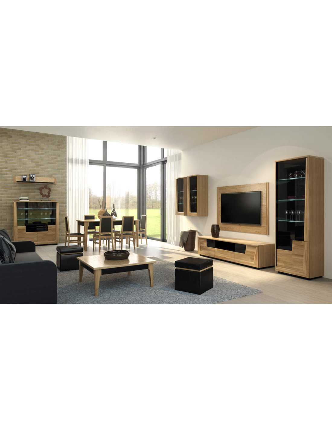 • naturalna okleina dębowa / wstawki ze szkła Lacobel (w opcji)