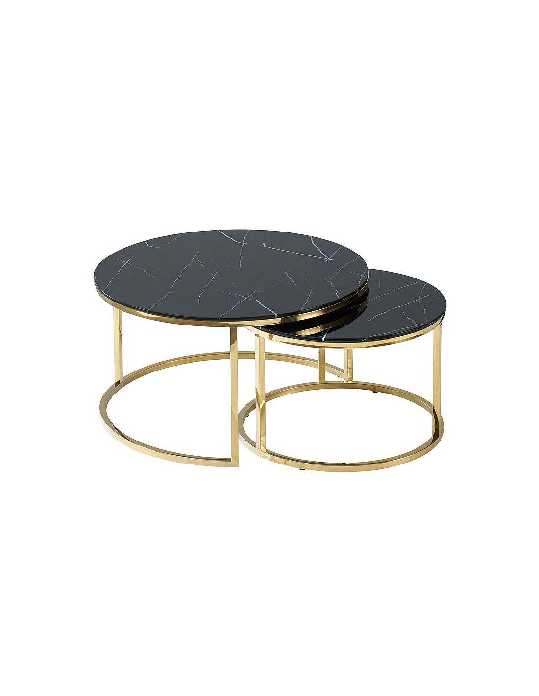 Meble Signal ŁAWA MUSE CZARNY EFEKT MARMURU/ZŁOTY (ZESTAW) MUSECZMAZL Ława Meble Signal charakteryzuje się minimalistycznym i nowoczesnym designem, który doskonale wpisuje się w aktualne trendy aranżacyjne. Mebel ten został wykonany z najwyższej jakości materiałów, co zapewnia trwałość i wytrzymałość na długi czas.