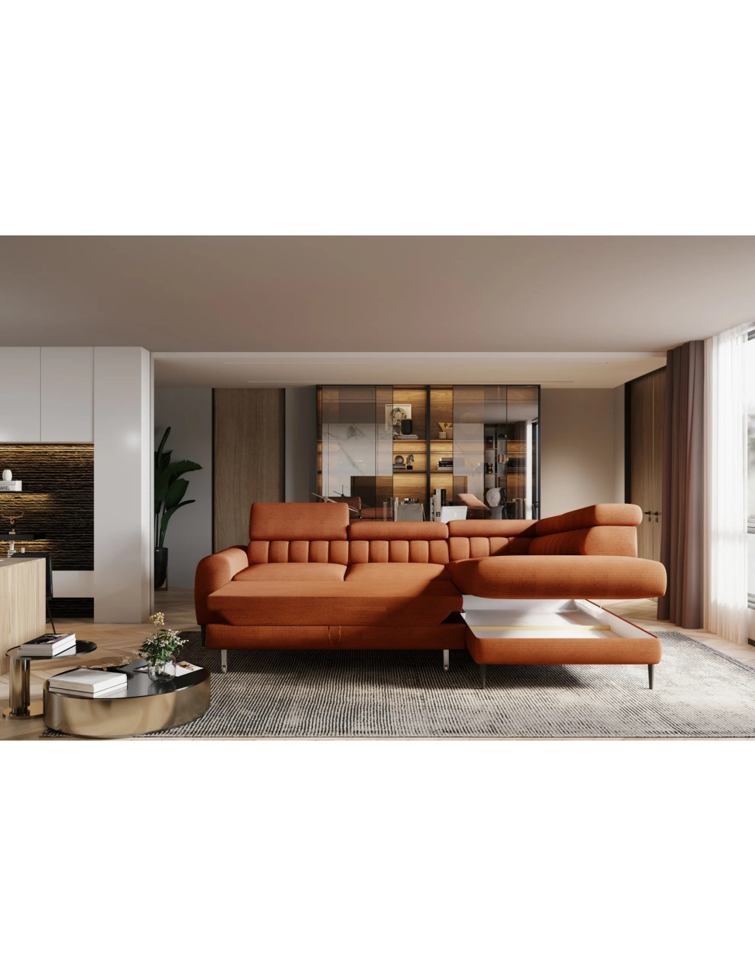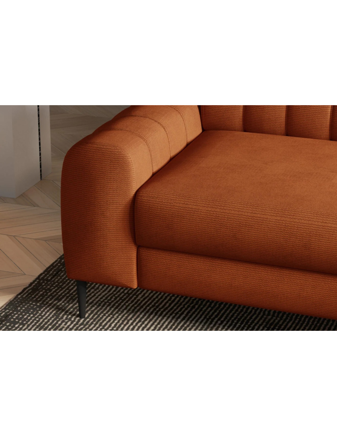 Kompaktowy, niezwykle komfortowy i funkcjonalny narożnik Navas od Wersal to doskonały wybór do mniejszych salonów. Funkcja spania pozwoli na wypoczynek w dzień i w nocy a pojemnik ukryty w otomanie to idealny schowek na dodatkową pościel. Navas posadowiono na czarnych nogach, które podkreślają nowoczesny styl mebla.