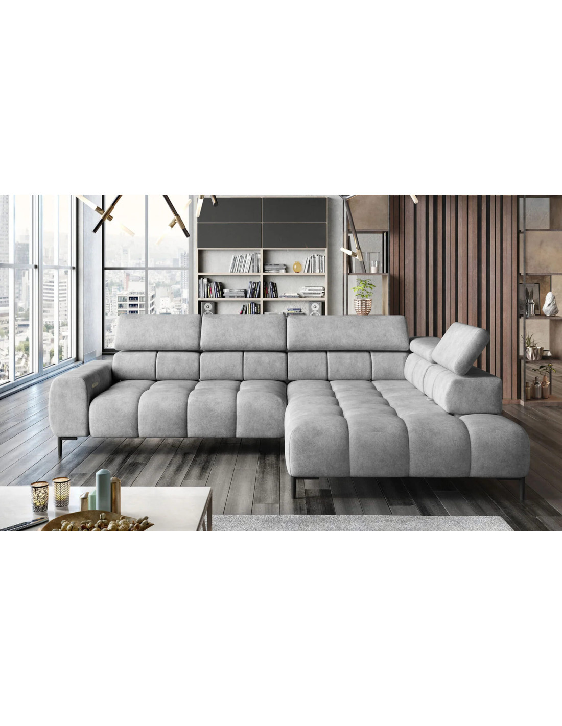 Narożnik SELVA L to połączenie nowoczesnego designu z wyjątkową funkcjonalnością, które spełni oczekiwania nawet najbardziej wymagających użytkowników. Jego przestronne siedziska, regulowane zagłówki oraz funkcja spania czynią go idealnym wyborem do salonu, w którym liczy się zarówno estetyka, jak i komfort codziennego użytkowania.