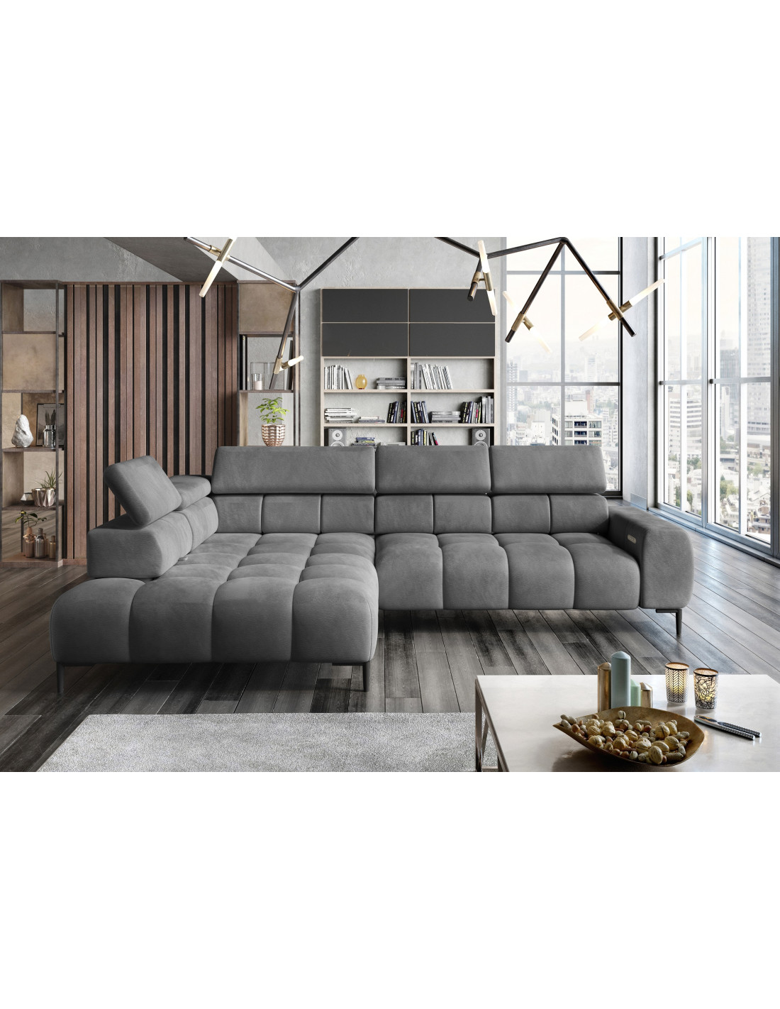 Narożnik Plaza L to nie tylko wyjątkowo praktyczne rozwiązanie, ale także piękny element dekoracyjny. Jego nowoczesny design pasuje do różnych stylów wnętrz, dodając elegancji i wyrafinowania salonowi. To mebel, który przyciąga uwagę i staje się centrum każdego pomieszczenia.