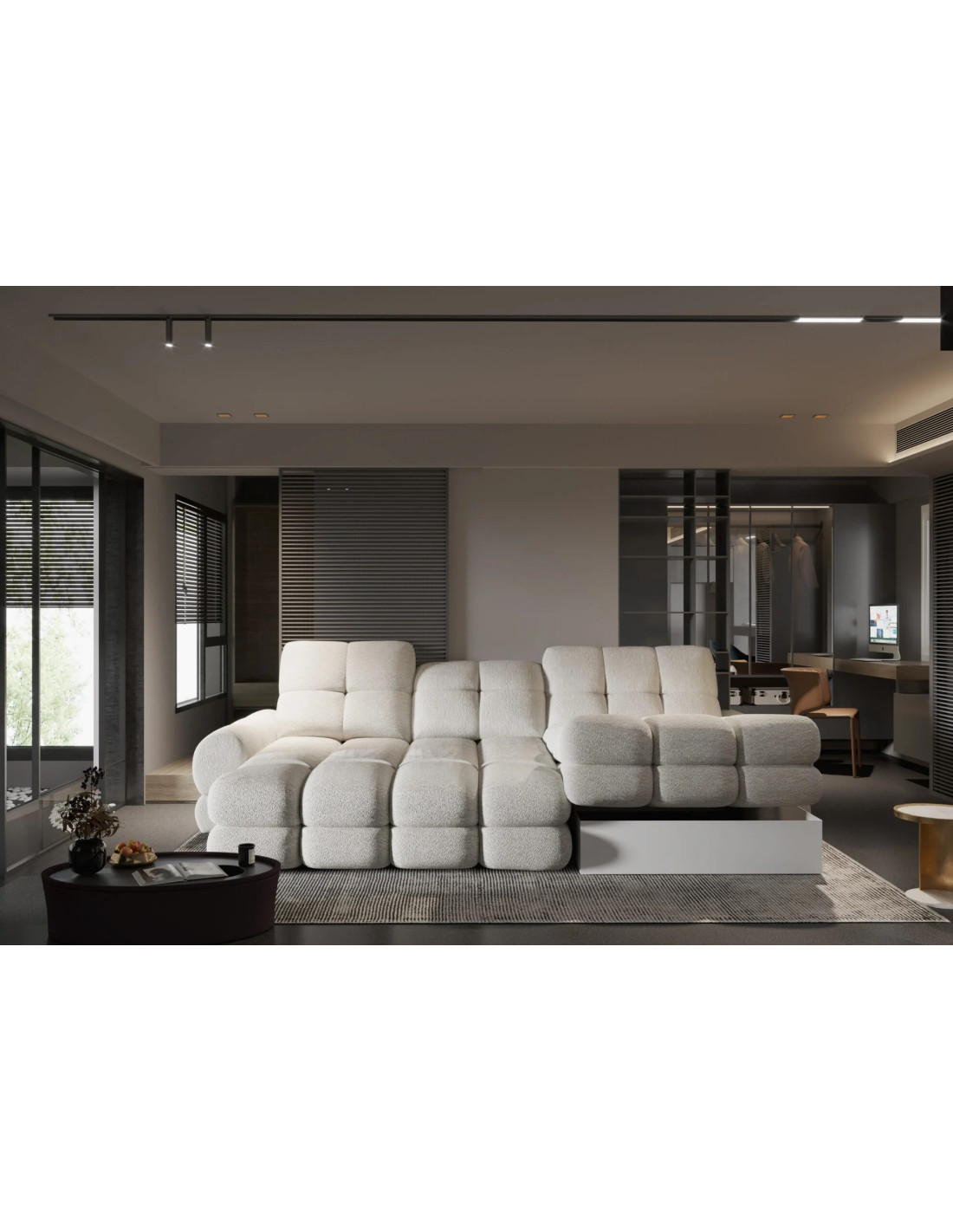 Tollo mini to narożnik zaprojektowany zgodnie z najnowszymi trendami. Masywne i wygodne siedzisko podkreślone głębokimi przeszyciami sprawia, że mebel prezentuje się oryginalnie i nietuzinkowo. Regulowane zagłówki pozwalające dostosować kąt nachylenia podwyższają jakość użytkowania. Zastosowanie długich wsuwów daje możliwość stworzenia komfortowej powierzchni spania. Dodatkowym atutem jest ukryty w otomanie pojemnik, w którym można przechować poduszki, czy ciepły koc.