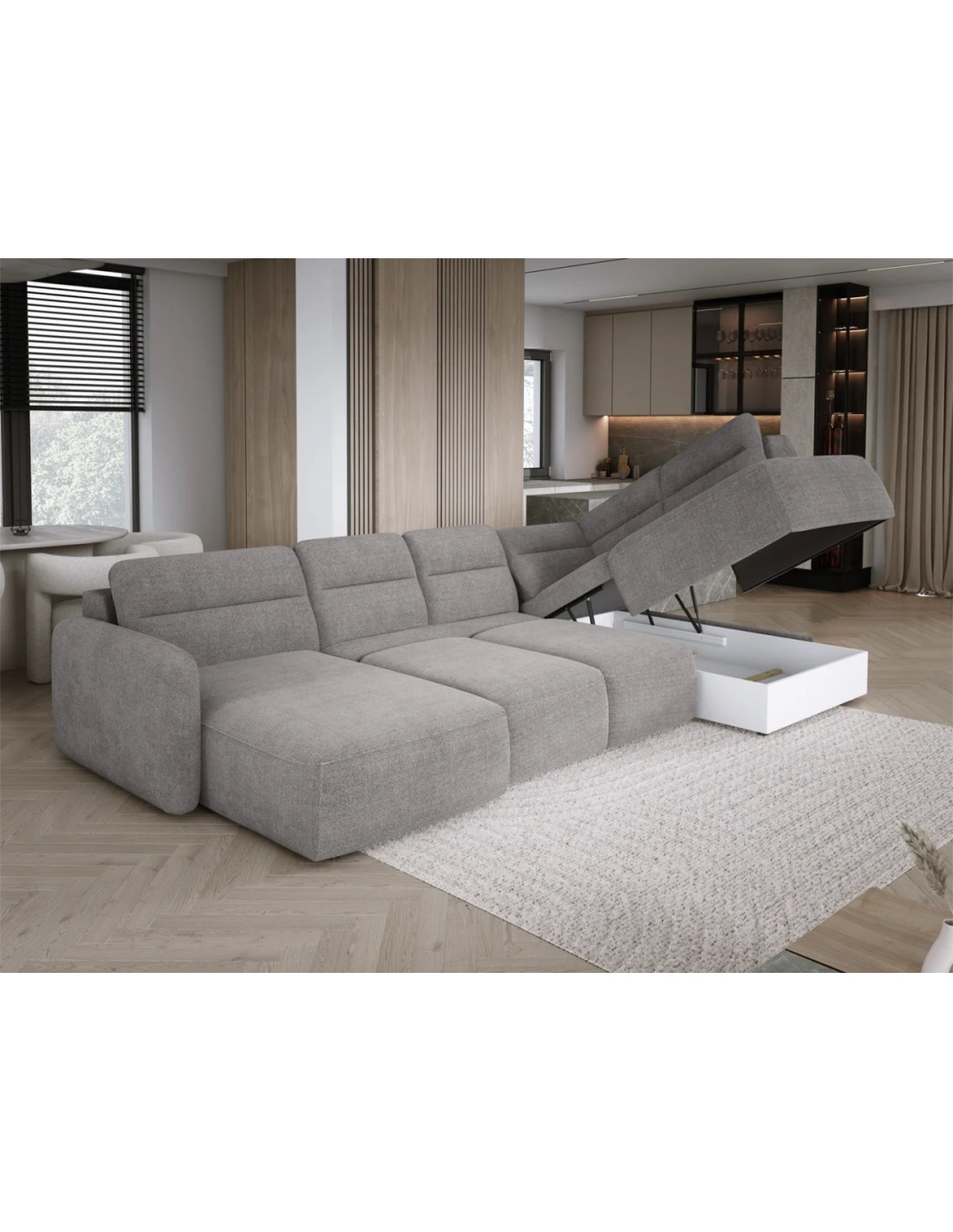 CALVANO to narożnik dostępny w rozmiarach S, L i XL, zaprojektowany z myślą o maksymalnym komforcie. Wyposażony w pojemnik na pościel oraz elektryczny wysuw siedziska aż do 60 cm, zapewnia wyjątkową przestrzeń relaksu. Bryła osadzona do ziemi podkreśla jego nowoczesny charakter.