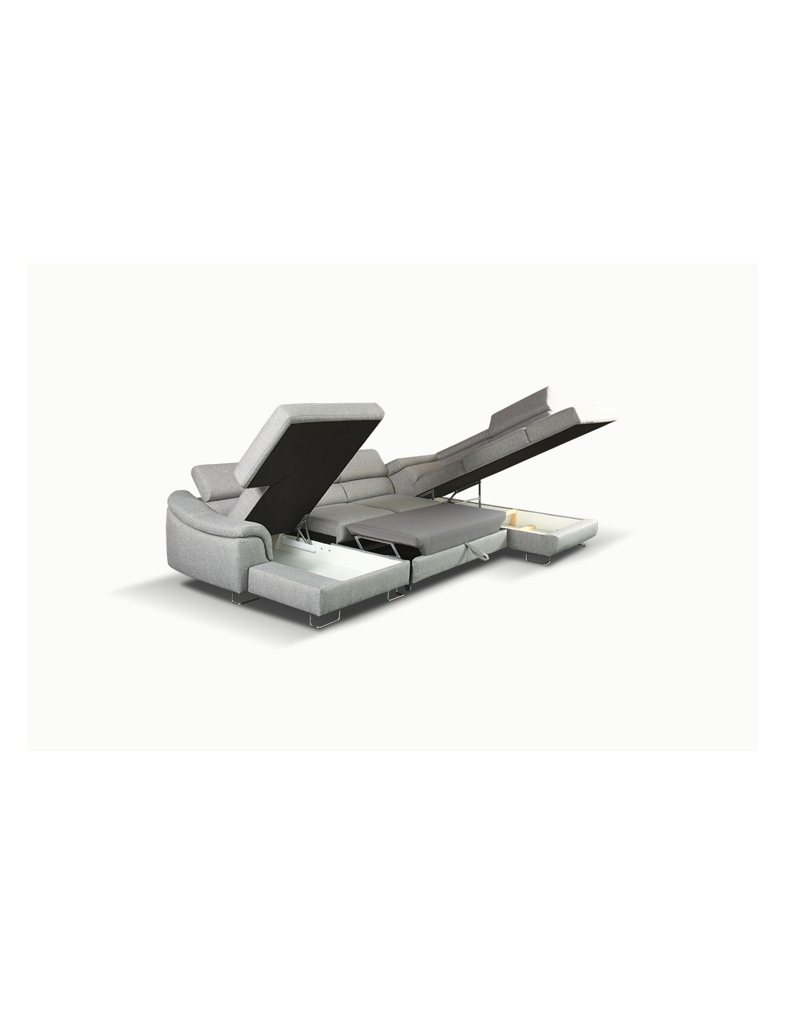 Nowoczesny narożnik Lavos funkcją spania, pojemnikiem na pościel,