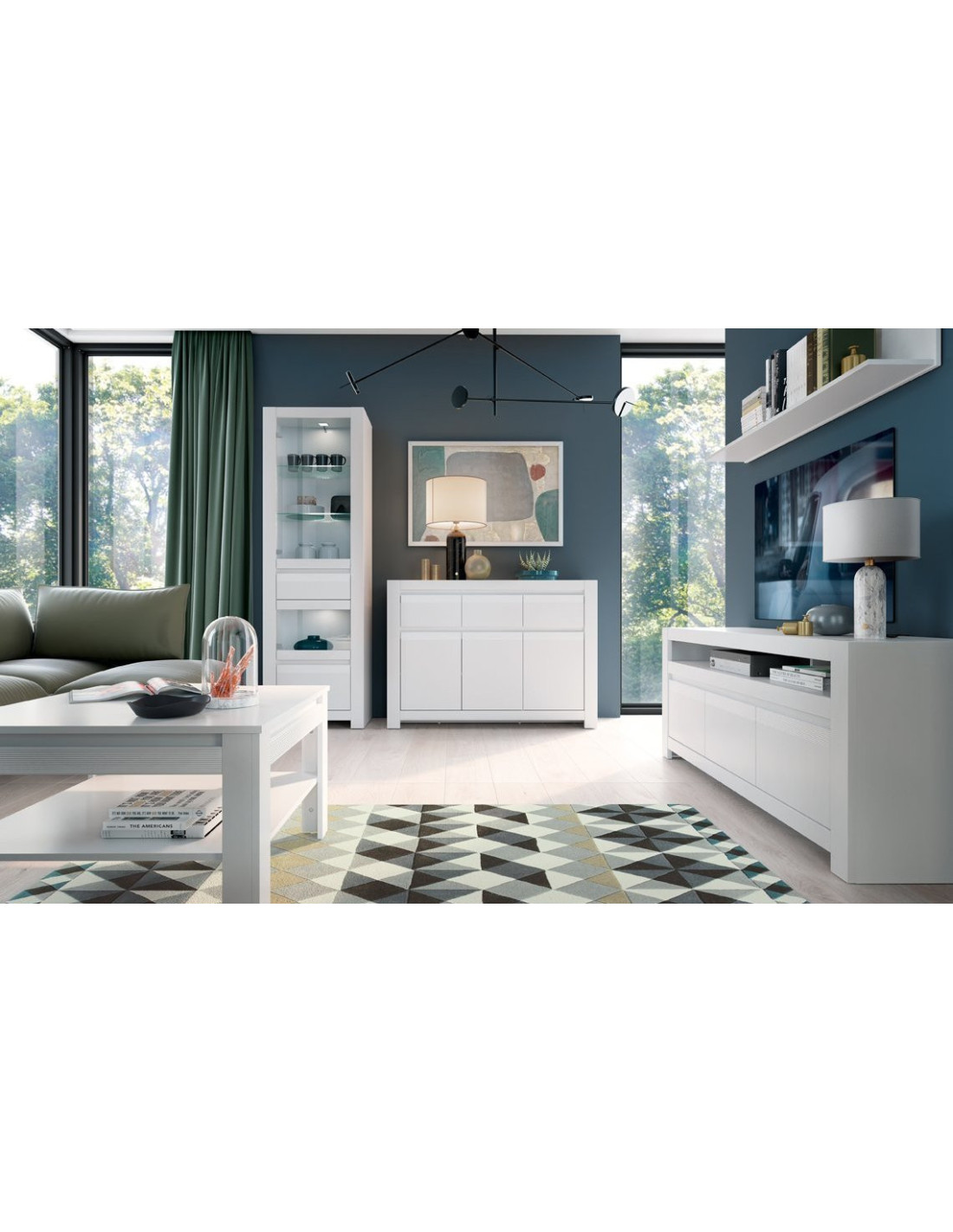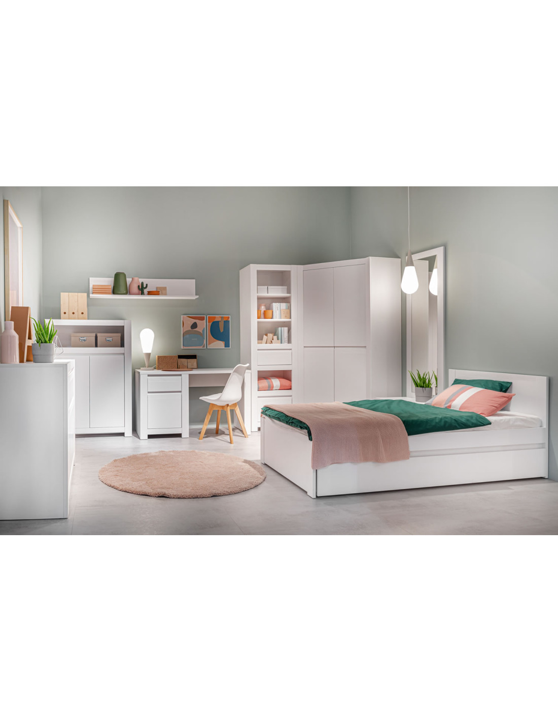 - Pólka w kolorze bieli posiada ozdobną ryflowaną listwę, która podkreśla jej atrakcyjność.