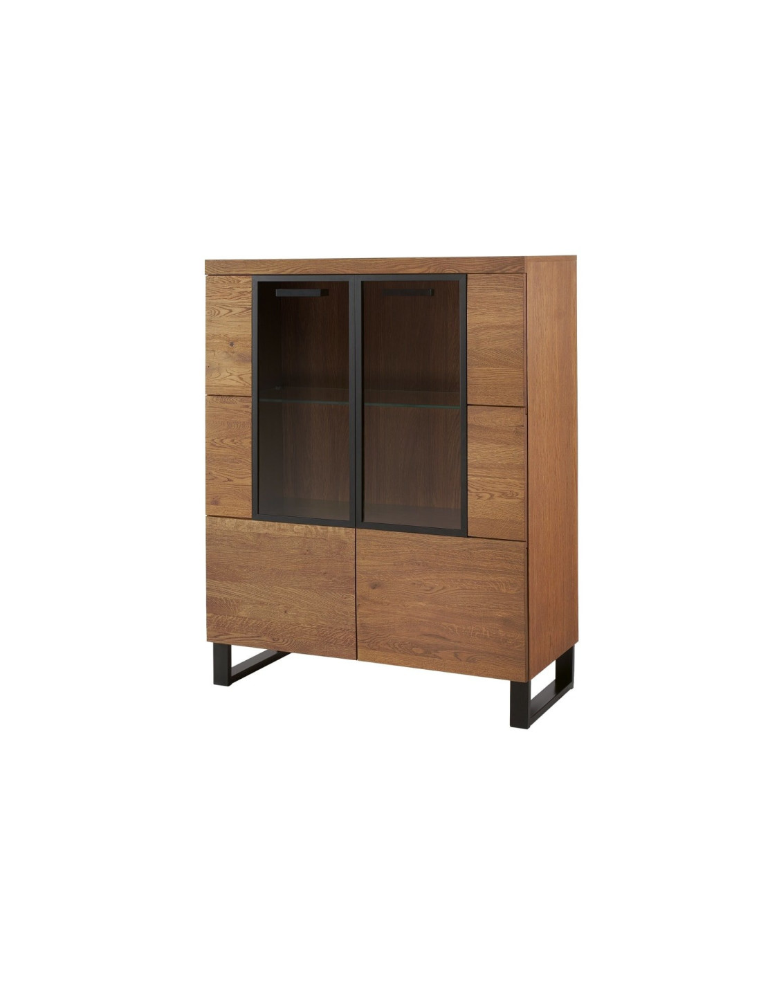 - Wykonanie front: lite drewno głęboko szczotkowane, szkło hartowane